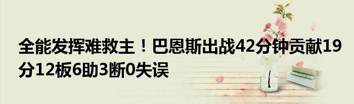全場比賽,巴恩斯出戰41分43秒,投籃14中8,三分2中0,罰球6中3,得到19分12籃板6助攻3搶斷0失誤,正負值-2。