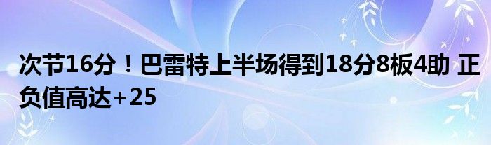次節比賽當中,巴雷特火力全開單節獨得16分,半場戰罷,巴雷特出戰17分22秒,投籃11中6,三分1中1,罰球5中5,得到18分8籃板4助攻,正負值高達+25。