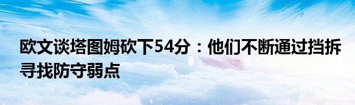 談到凱爾特人球員塔圖姆今天砍下了54分,歐文表示:“他們會通過擋拆尋找防守弱點,他們一次又一次的使用這個戰術,以此獲得換防機會,并通過這種方式讓我們付出代價。”