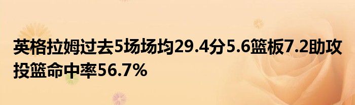 數(shù)據(jù)顯示,英格拉姆過去5場場均29.4分5.6籃板7.2助攻,投籃命中率56.7%。具體如下: