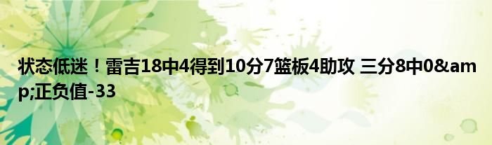 此役,雷吉出場27分20秒,投籃18投4中,三分8投0中,罰球2罰2中,得到10分7籃板4助攻,正負值為全場最低的-33。