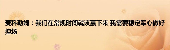 麥科勒姆繼續說道:“在第四節需要更好的執行戰術。在一些回合中要更早地進入到進攻中來。我需要在后期起到穩定軍心的作用,這場比賽應該在常規時間內就該拿下。”
