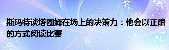 談到塔圖姆可以在比賽中做出正確的決策,斯瑪特表示:“自從他來到球隊(duì)后,他就一直這么做,伙計(jì)。他以正確的方式閱讀比賽,讓比賽來到他身邊,他會(huì)找準(zhǔn)自己的位置做他該做的,所以對(duì)我們和他自己來說,他的成長是至關(guān)重要的,這不僅是向他自己,而且向我們和世界上的每個(gè)人展示了什么是他想為之而努力的,并且他正為此付諸行動(dòng)。”