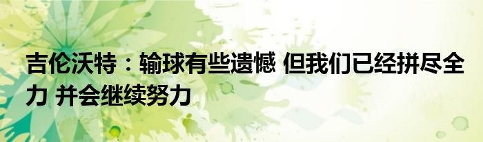 賽后,山東男籃外援吉倫沃特接受了媒體采訪,他總結(jié)比賽道:“和教練講得一樣,我們已經(jīng)非常拼了,雖然有些遺憾,但我們大家已經(jīng)是拼盡了全力,希望大家不要放棄,繼續(xù)照這個節(jié)奏努力。”