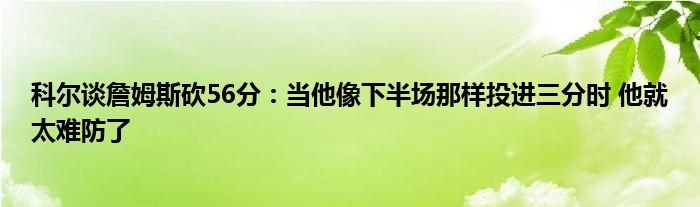 談到湖人球星詹姆斯今天砍下56分,科爾表示:“顯然,他的突破令人棘手,而當(dāng)他像今天下半場(chǎng)這樣命中三分時(shí),防守他就太難了。”