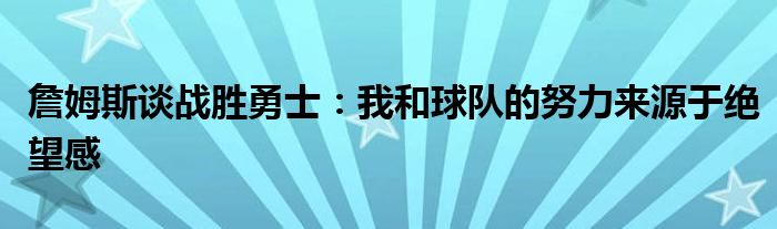 談到這場勝利,詹姆斯表示:“我和球隊的努力來源于絕望感,今天我們打得令人鼓舞。”