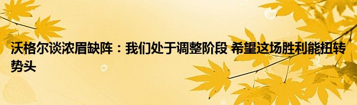沃格爾表示:“我們處于調整階段,正在努力找到一些辦法,希望今天的勝利能夠扭轉勢頭。”