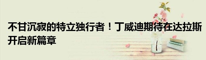球迷們漸漸發現,對于場均回合數聯盟最少、以陣地戰為主的獨行俠而言,球風不事張揚卻足夠穩當的丁威迪正合適。而在聯盟征戰8年,輾轉4隊的丁威迪,也有機會成為隊內的老大哥,替東契奇分憂。難怪本場賽后,面對記者的長槍短炮,丁威迪開口第一句便是:“獨行俠很適合我。”