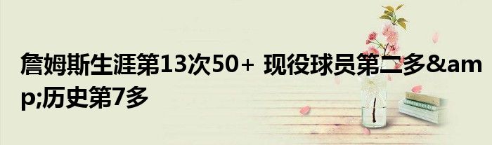 據統計,這是詹姆斯生涯第13次50+,現役球員第二多,僅次于哈登。