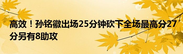 本場比賽,廣廈球星孫銘徽發(fā)揮高效,他出場25分鐘,投籃17中10,三分10中5,罰球2中2,得到全場最高的27分,外加2籃板8助攻1搶斷,不過出現(xiàn)3次失誤。