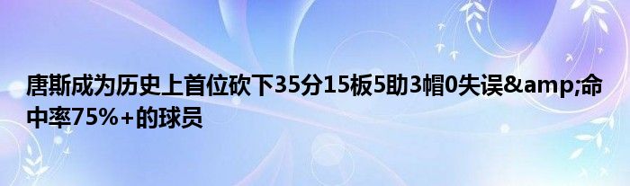 數據顯示,唐斯是NBA自1977-1978賽季開始統計失誤數據以來,首位單場比賽砍下至少35分15籃板5助攻3蓋帽,投籃命中率在75%以上,且沒有出現失誤的球員。