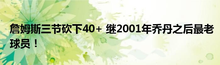這樣一來,詹姆斯也成為繼2001年喬丹之后三節(jié)砍下40+最老的球員,在2001年12月29日奇才對陣黃蜂的比賽中,喬丹曾有三節(jié)44分的表現(xiàn),當時他已經(jīng)38歲315天。