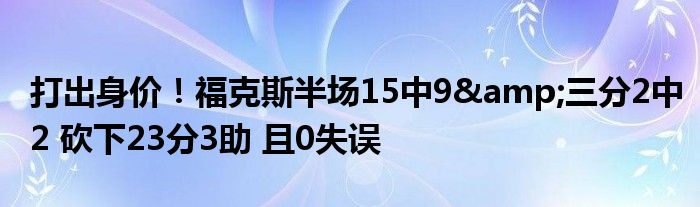 國王球星福克斯上半場出戰18分37秒,投籃15中9,三分2中2,罰球3中3,得到23分3助攻,且沒有失誤,正負值+13!
