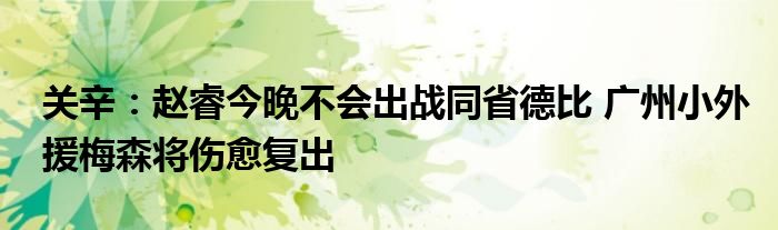 3月5日訊 據廣東跟隊記者關辛的消息,趙睿將繼續缺戰今晚的同省德比,廣州外援梅森將復出。