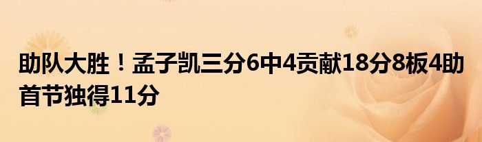 首節比賽當中,孟子凱火力全開獨得11分,最終幫助球隊大勝對手。