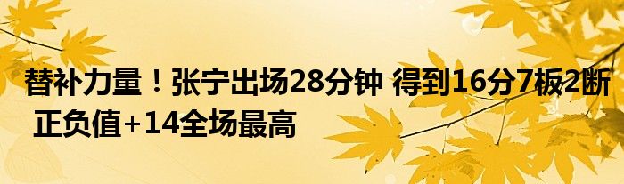 山西球員張寧在板凳席上做出貢獻(xiàn)。他替補(bǔ)出場(chǎng)28分鐘,12中7,得到16分7籃板2搶斷;正負(fù)值+14,全場(chǎng)最高。