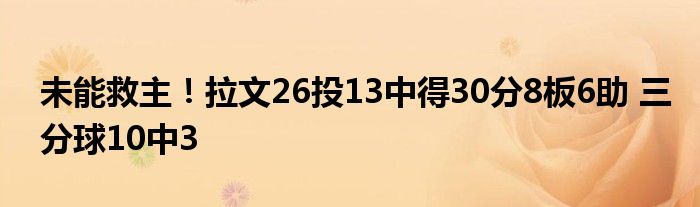 雖然輸球,但拉文仍然拿出了亮眼表現,全場他出戰39分鐘,26投13中得到了30分8板6助1搶斷的數據,他的正負值為+6。
