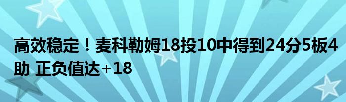 本場比賽,麥科勒姆再有高效表現(xiàn),全場他出戰(zhàn)30分鐘,18投10中得到了24分5板4助1搶斷的數(shù)據(jù),他的正負值高達+18。