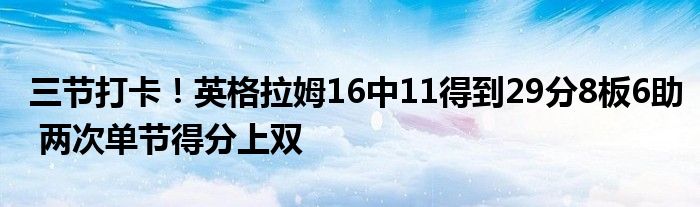 首節和第三節比賽中,英格拉姆單節分別貢獻11分和12分,比賽早早失去懸念,他在末節也沒有再登場。
