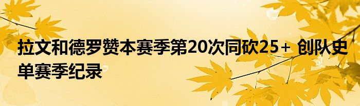 據(jù)統(tǒng)計(jì),這是德羅贊和拉文本賽季第20次同一場比賽均25+,創(chuàng)造隊(duì)史單賽季紀(jì)錄,此前紀(jì)錄是84-85賽季喬丹和伍爾德里奇的19場。