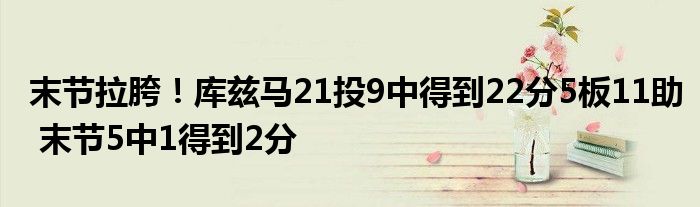 奇才球員庫茲馬本場比賽三分手感不佳,他全場出戰35分鐘,21投9中,三分6中0,罰球4中4,得到了22分5籃板11助攻2蓋帽的數據。