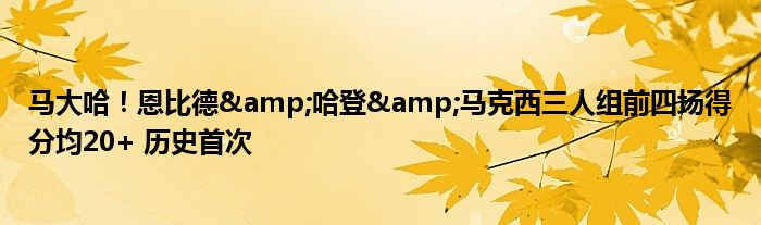 據統計,在恩比德、哈登、馬克西配合出戰的前4場比賽中,三人每場比賽的得分均為20+。這是NBA歷史首次有三人組達成該數據。