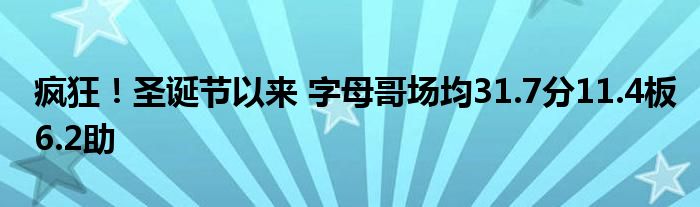 自圣誕節(jié)以來,在26場(chǎng)比賽中,字母哥場(chǎng)均爆砍31.7分11.4籃板6.2助攻,罰球命中率77%。