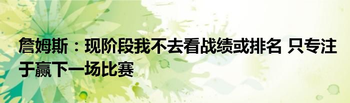 采訪中,詹姆斯說道:“現(xiàn)在這個時候,我甚至不去看我們的戰(zhàn)績或者排名,我專注于下一個對手,以及在這期間我們做得不好的地方和做得好的地方,想想如何才能爭得一場勝利,邁過這道坎兒。”