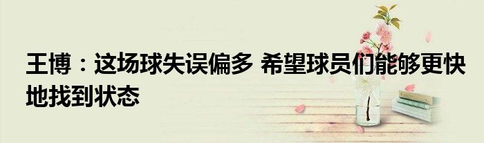 王博說道:“兩場球都是慢熱,我覺得不是做得很好,而且這場球我們有21次失誤,有點多了。希望球員能夠更快地找到狀態,我說的狀態就是開局以后的興奮度,一開局的時候就能投入到比賽當中去,而不是在場上看著比較散漫。”