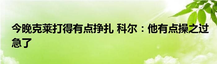 采訪中科爾被記者問到本場表現(xiàn)有點(diǎn)掙扎的克萊,“是的,克萊今晚打得比較掙扎,他剛從傷病中恢復(fù)過來,需要時(shí)間為后面的比賽做好準(zhǔn)備,在這個(gè)過程中他會(huì)遇到起伏,我們后續(xù)會(huì)逐漸給他增加上場時(shí)間,他會(huì)越來越好的。”科爾說道,“他會(huì)遇到這些困難,是因?yàn)樗悬c(diǎn)操之過急。他需要順其自然,耐心等待球轉(zhuǎn)移到他的手里。我覺得他有點(diǎn)用力過猛,但這不能怪他,2年半沒打球了,他也希望能盡快恢復(fù)并做出貢獻(xiàn)。希望他繼續(xù)保持健康,他身處在一支很好的球隊(duì)。”