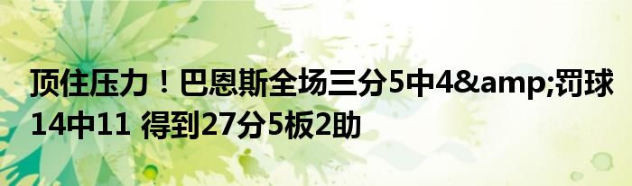 第四節(jié)巴恩斯2投2中,罰球6中5,得到9分1助攻,幫助球隊(duì)最終艱難取勝。