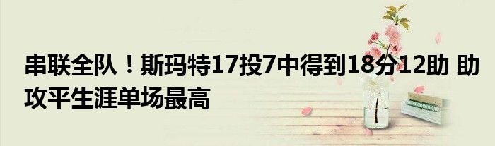 綠軍球員斯瑪特本場比賽發揮出色,他全場比賽出戰34分34秒,17投7中,三分9中4,得到18分2籃板12助攻的數據,其中助攻數平生涯單場最高。