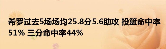 數據顯示,希羅在過去5場比賽場均得到25.8分5.6助攻,投籃命中率51%,三分命中率44%。