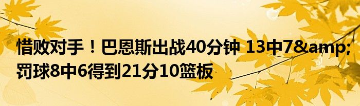 全場比賽,巴恩斯出戰39分55秒,投籃13中7,三分3中1,罰球8中6,得到21分10籃板2助攻,正負值-2。