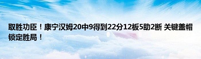 活塞狀元秀康寧漢姆本場比賽表現(xiàn)出色,他全場比賽出戰(zhàn)38分鐘,20投9中,三分9中4,得到22分12籃板5助攻2搶斷1蓋帽。