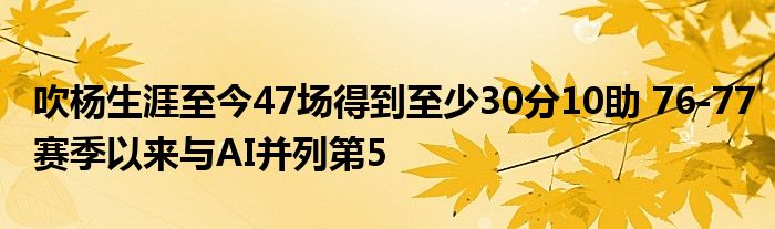 這樣一來,特雷-楊職業(yè)生涯至今已經(jīng)有47場比賽得到至少30分10助攻,自NBA-ABA合并以來,與艾弗森并列第5多。