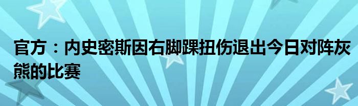 3月4日訊 凱爾特人官方宣布,內史密斯因右腳踝扭傷退出今日對陣灰熊的常規賽。