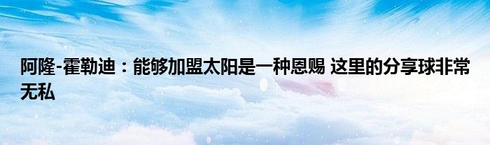 談到太陽,阿隆-霍勒迪表示:“我從來沒有在一支像太陽這樣分享球這么無私的球隊中打過球,來到球隊后學習戰術有一些困難,但能來到這里就是一種恩賜。”
