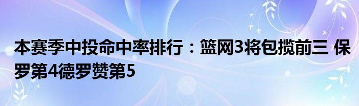 3月4日訊 今日,美媒曬出本賽季至今中距離投籃命中率排名前5的球員,其中籃網3將包攬前三,公牛球星德羅贊排名第5。