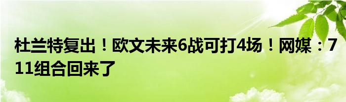 籃網(wǎng)自媒體Brooklyn Netcast今日曬出杜蘭特與歐文的合照,并寫道:“杜蘭特回歸,未來(lái)6場(chǎng)歐文可打4場(chǎng),711組合回來(lái)了
