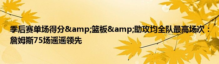 據統計,詹姆斯生涯至今共有75場季后賽單場得分、籃板、助攻均為全隊最高,排名NBA歷史第一。