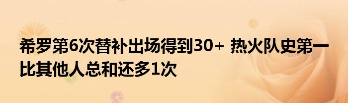 數據顯示,本場比賽是希羅生涯第6次替補出場砍下至少30分,為熱火隊史最多,比其他人總和還多一次。