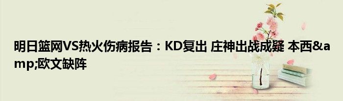 值得一提的是,此役杜蘭特將復出,這是他自1月14日以來首次不在傷病名單上。