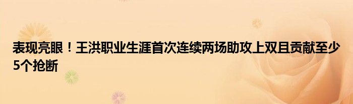 值得一提的是,這是王洪職業生涯首次連續兩場助攻上雙且貢獻至少5個搶斷,球隊目前取得了兩連勝。