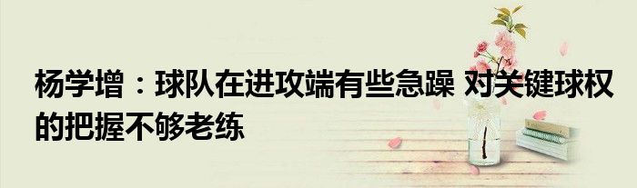 楊指導總結本場比賽:“球隊在整個進攻端中,心態不夠平靜,還是有些急躁,導致成功率比較低。今天失誤數也比較多,達到20次,并且外援費爾德手腕有傷,對個人狀態影響較大。球隊成長,在關鍵時刻對球權的把握不夠老練和成熟,需要進一步總結,去打好接下來的比賽。”