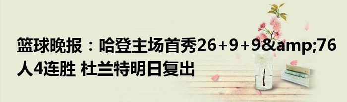 高效準三雙!哈登13投8中&罰球10中8 得到26分9籃板9助攻