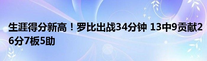 全場比賽,羅比出戰33分55秒,投籃13中9,三分5中4,罰球7中4,得到生涯新高的26分外加7籃板5助攻2搶斷2蓋帽,正負值+21。