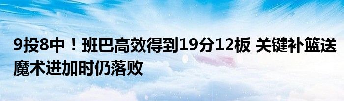 本場比賽,班巴拿出高效表現,全場他9投8中得到了19分12板1搶斷1蓋帽的數據。在第四節最后時刻,班巴關鍵補籃讓魔術追平比分,比賽進入加時,但魔術最終仍然落敗。