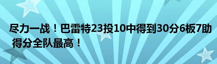 尼克斯球員巴雷特延續了最近火熱狀態,他全場比賽出戰40分鐘,23投10中,三分8中3,罰球8中7,得到了全隊最高的30分,外加6籃板7助攻。