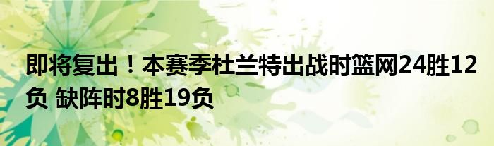 據(jù)數(shù)據(jù)媒體StatMuse統(tǒng)計(jì),本賽季當(dāng)杜蘭特出戰(zhàn)時(shí),籃網(wǎng)的戰(zhàn)績?yōu)?4勝12負(fù),他缺陣時(shí)籃網(wǎng)戰(zhàn)績暴跌至8勝19負(fù)。
